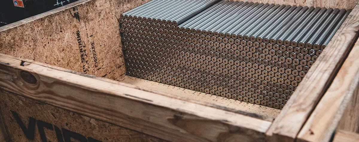 Semi-finished “Lollipops” are common for many of our pistol barrel clients, who intend to machine the lug geometry of their barrels in a 5-axis or similar mill. Vortakt can package and ship these barrels to allow for a seamless transition between our production processes and your in-house workflow. Clients have even optimized material handling of these lollipops from our crates with collaborative robots, automating the loading of their machining centers!